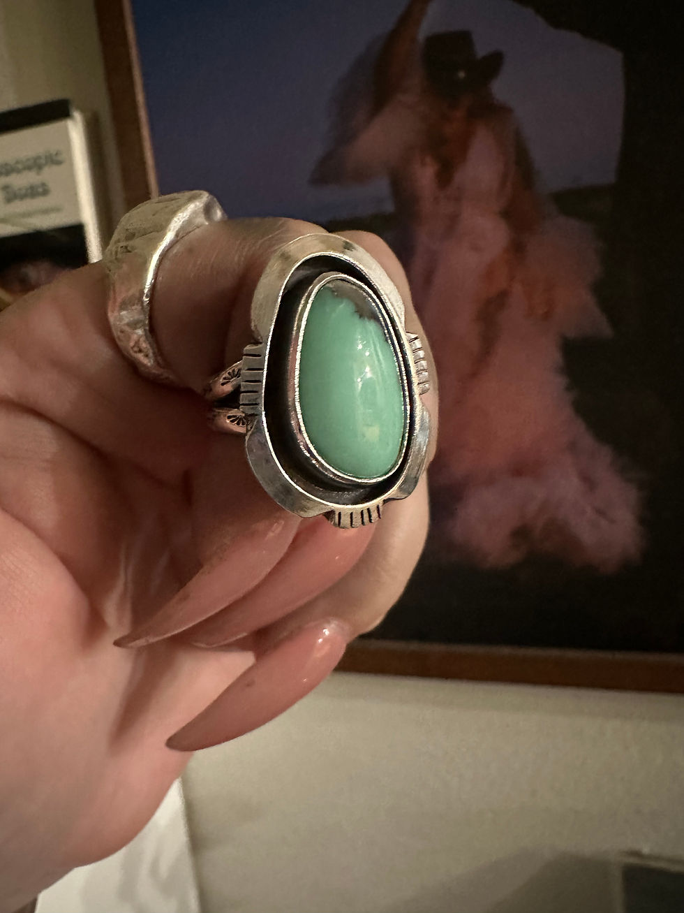 Green silver adorned royston ring